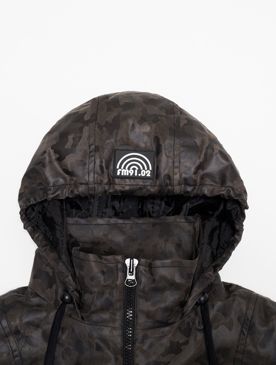 밑단을 스트링으로 조일 수 있는 후드 아노락 입니다. 독특한 카무플라주 패턴이 돋보이는 스웨이드와 가죽 느낌의 100% 폴리에스테르 소재로 스타일리시한 실루엣을 연출하며, 안감으로 누빔 원단을 사용해 추운 날씨에도 보온성을 높여줍니다.