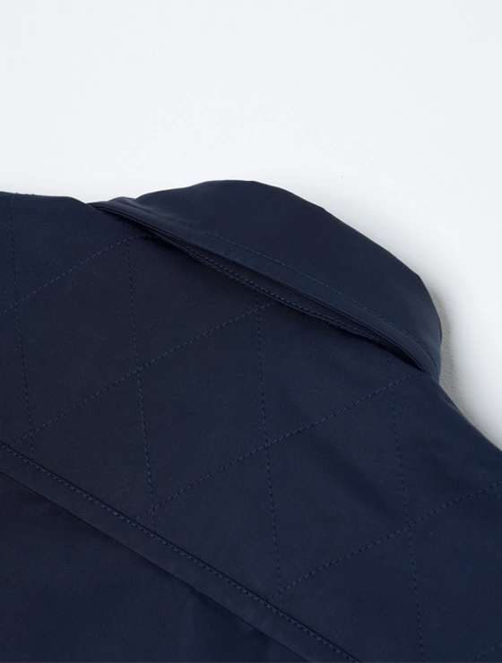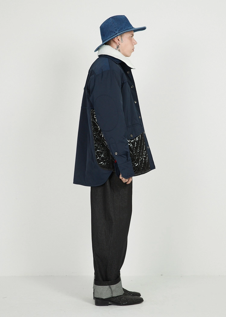 셔츠 스타일의 패딩 재킷은 어깨와 팔꿈치, 그리고 포켓 부분의 퀼팅 장식이 포인트로 디자인 되었습니다. 겉감 폴리에스테르 65%, 코튼 35%이며, 재킷 안쪽에 폴리에스테르 100% 빨간색 트윌 조직을 사용해 소매를 걷어 올리면 특별한 멋을 더해줍니다. 가느다란 화이바로 압축해 중량 대비 슬림한 표현이 가능하며 뛰어난 복원력과 형태의 안정성이 우수한 저데니아(3OZ) 충전재를 넣어 한겨울 뛰어난 보온성을 유지합니다.